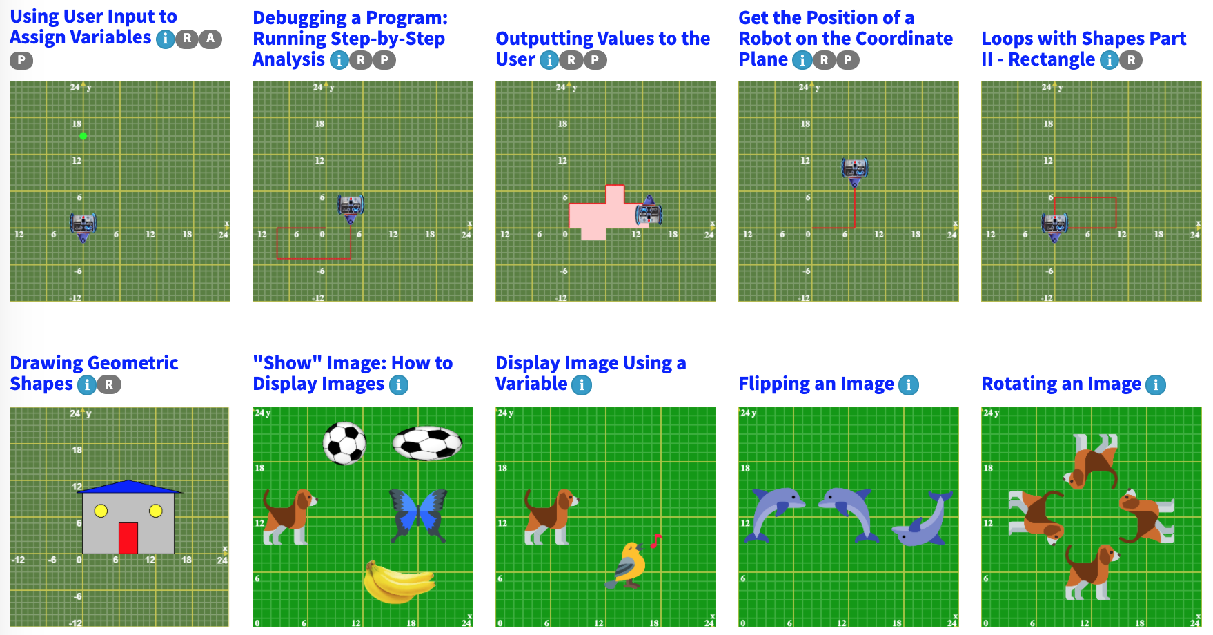 RoboBlocky is an integrated learning environment (ILE) for learning math, computer science, and STEAM with coding and robotics. In addition to a large number of math, coding, and robotics lessons and activities, teachers and students can create their own activities. It also allows teachers to manage their classes, add student accounts, assign homework, grade student submitted homework, and provide feedback.