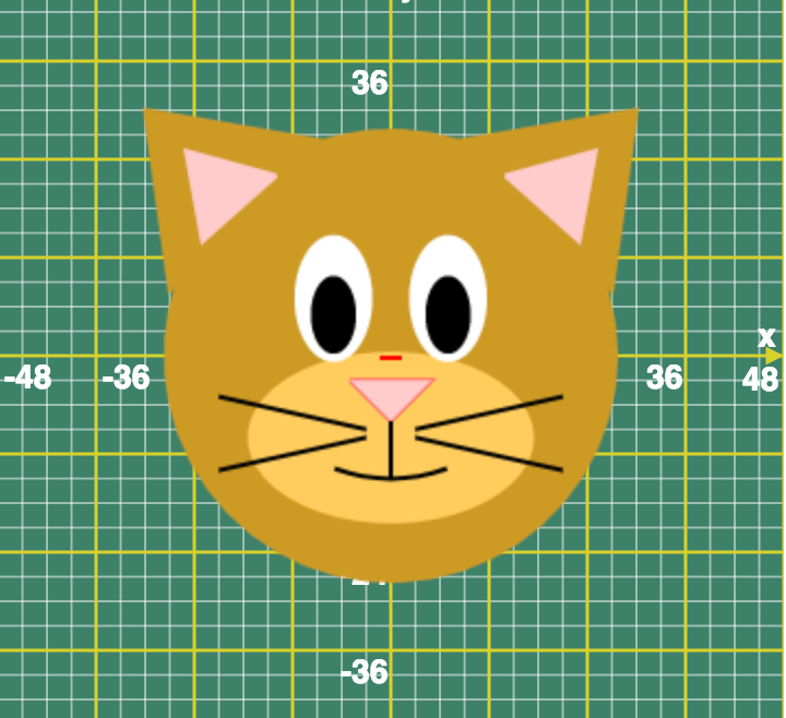 The pre-placed block will draw a circle at the origin for the face of the cat. Add drawing blocks to create ears, a nose, a mouth, whiskers, etc. |