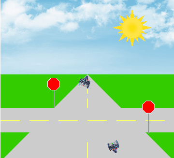 Two Robots Driving in an Intersection