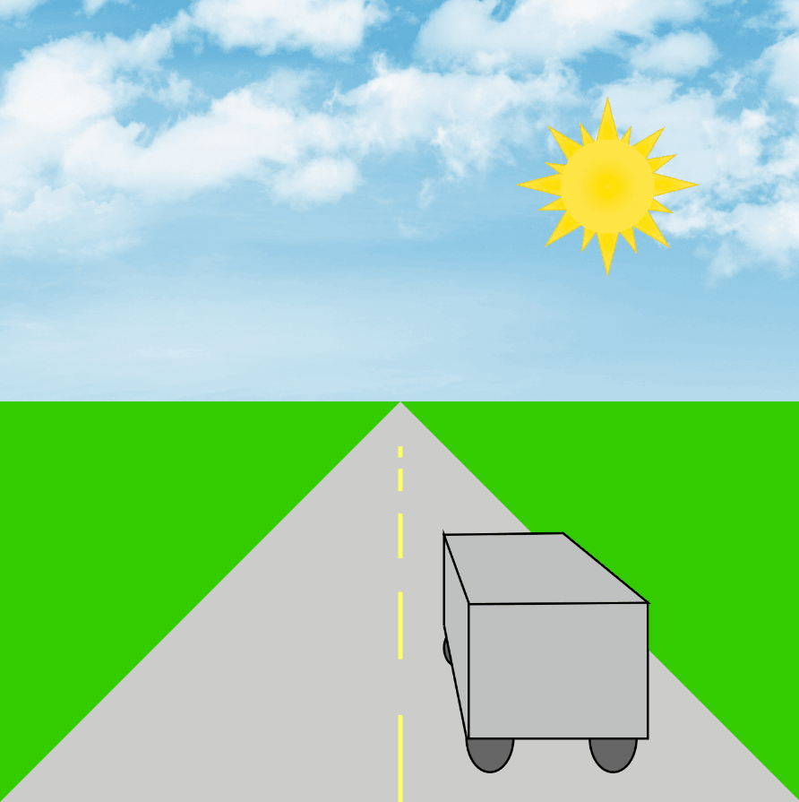In this activity you will animate a truck driving forward on a road in one-point perspective. The pre-placed blocks give x-values in terms of the variable x for every shape within a loop that counting by x. The equations for the lines starting at the vanishing point through the midpoint of each ellipse(wheel) is given. Use these equations to write expressions in terms of x for the y-values of the ellipses. Then find equations for the red lines generated by the board blocks, and use these equations to find expressions for the y-values of each of the quadrilaterals. |