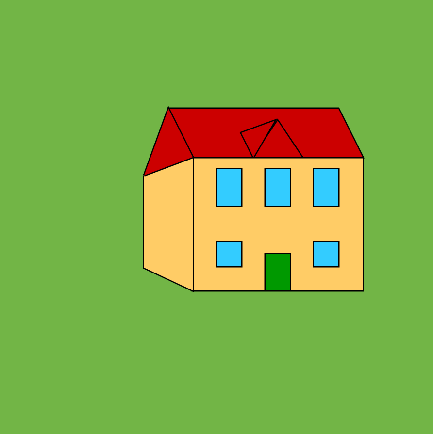 In this activity, you will draw a house in one-point perspective using perspective lines. The board blocks draw lines to guide the drawing of the house. The pre-placed blocks draw the walls of the house. Add blocks to finish the drawing, then delete the board blocks. Once the drawing is finished, add fillColor() blocks to color the house. |
