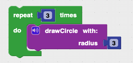 The above drawCircle() has a parameter to read in the desired radius of the circle to be created.The repeat loop allows you to repeat the inside blocks a specified number of times. For this activity, you will need to modify the given blocks to trace the circles given.