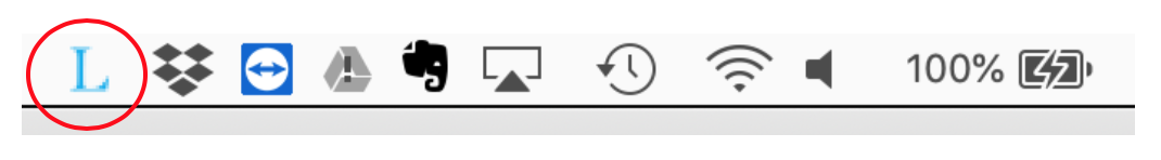 Figure 5: The Linkbot Service “L” in the Mac menu bar (your list of icons will be different). A similar popup window as for Windows will appear when you click the L.
