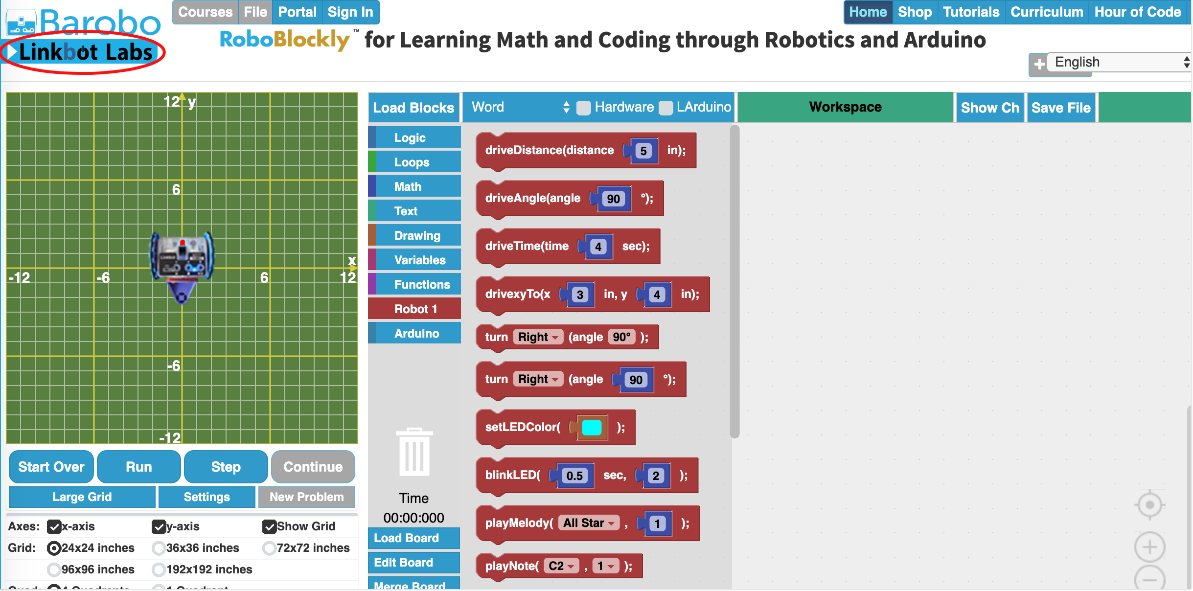 (5) Click “Run” or “Step” to move the virtual Linkbot on the grid and the hardware Linkbot at the same time.